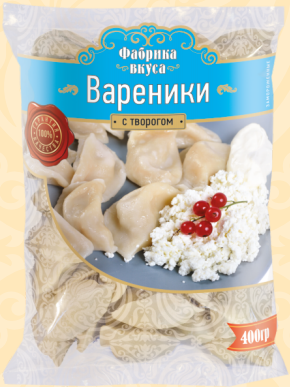 Состав: творог, мука пшеничная в/с, вода, яйцо, сахар, соль, масло растительное, ванилин. Способ приготовления: замороженные вареники погрузить в кипящую воду, варить после всплытия 4-6 минут. Срок годности и условия хранения: 6 месяцев при t не выше -18⁰С
