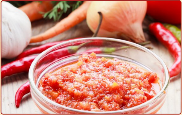 : томаты свежие, чеснок, корень хрена, перец красный, соль, сахар, уксусная кислота.