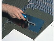 Питающий кабель и датчик температуры пола монтируются в гофротрубе, под которую может потребоваться сделать углубление, например, при установке мата в слой плиточного клея.