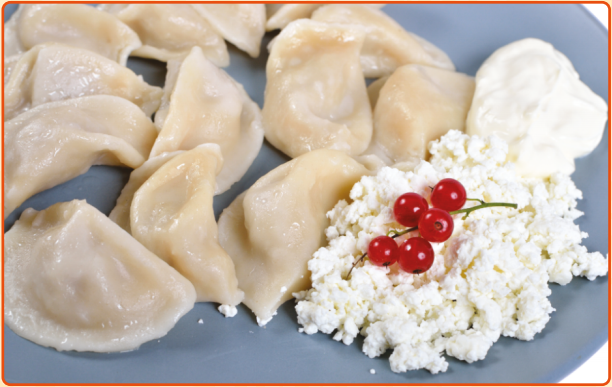 Состав: творог, мука пшеничная в/с, вода, яйцо, сахар, соль, масло растительное, ванилин. Способ приготовления: замороженные вареники погрузить в кипящую воду, варить после всплытия 4-6 минут. Срок годности и условия хранения: 6 месяцев при t не выше -18⁰С
