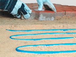 под тротуарную плитку кабель в основном монтируется в песок, и погонная мощность кабеля не может превышать 25 Вт/м;