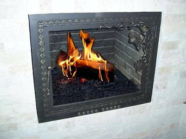 Если у Вас уже есть готовый камин, и вы хотите установить в него каминную дверь, то необходимо снять точно замеры и изготовить дверь с очень небольшим зазором. Если каминный проем имеет форму арки, то необходимо изготовить шаблон, по которому будет изготавливаться каминная дверь.